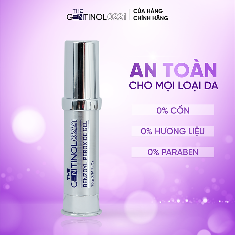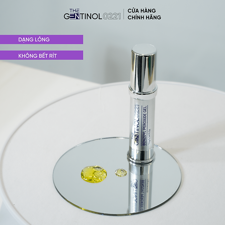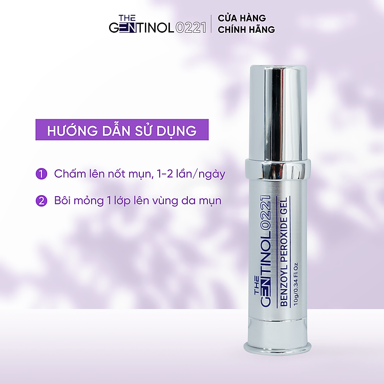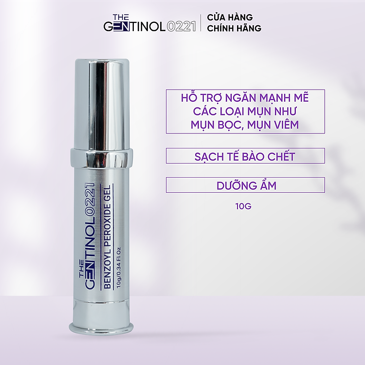Gel chấm mụn The Gentinol 0221 hỗ trợ ngăn mụn, làm chậm tiến độ phát triễn của mụn và vi khuẩn Benzoyl Peroxide Gel 10g