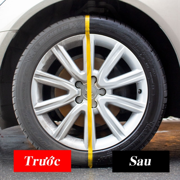 - Để đạt hiệu quả cao nhất và tiết kiệm nhất, hãy cho gel vào một miếng mút dưỡng lốp chuyên dụng, quét lên toàn bộ bề mặt lốp.