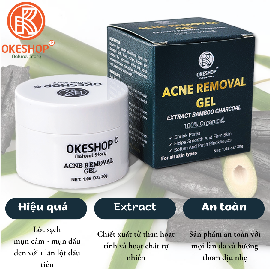 Gel lột mụn OKESHOP được sản xuất trên công nghệ tiên tiến của đài loan, với sản phẩm Kem lột mụn tinh chất Lô Hội và Than Tre chứa các thành phần thiên nhiên giúp thẩm thấu làm sạch sâu bề mặt da và lỗ chân lông, nhổ sạch các loại mụn cám, mụn đầu đen, bạ nhờn, tế bào chết, cùng các lớp sừng nằm sát dưới bề mặt da mà mắt thường khó có thể thấy được, giúp da sạch bóng láng mịn, không còn mụn và đồng thời thành phần hoạt chất có trong gel giúp thu nhỏ lỗ chân lông và giảm các tác nhân gây mụn mủ, mụn bọc, mụn cám, mụn đầu đen.