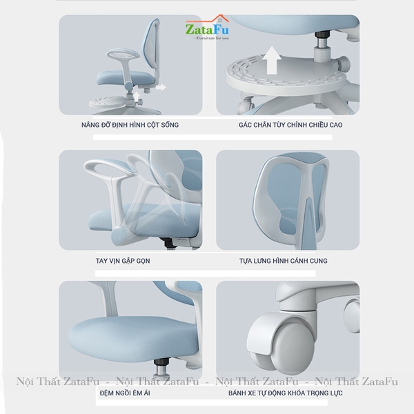 Sức khỏe và sự phát triển toàn diện của con trẻ là điều làm các bậc phụ huynh luôn lo lắng và quan tâm. Để đem lại cho con những điều tốt đẹp nhất, cha mẹ dành nhiều thời gian để tìm tòi, nghiên cứu và lựa chọn kĩ càng, từ các loại dinh dưỡng có trong thức ăn, các dịch vụ trải nghiệm đến các món đồ sử dụng trong học tập và cuộc sống hằng ngày, đồ nội thất cũng không ngoại lệ. Một chiếc giường ngủ đáng yêu, một tủ đồ xinh xắn, một chiếc kệ sách đa năng đi cùng một chiếc bàn học độc đáo, theo đây sẽ là sản phẩm hoàn hảo và không thể bỏ qua khi lựa chọn nội thất cho con, đảm bảo sự an toàn và hứa hẹn đem lại trải nghiệm thoải mái nhất cho con trẻ. Nhưng nếu đã lựa chọn cho con bàn học mà lại bỏ quên mất mẫu ghế ngồi học chống gù lưng thì thật là một thiếu sót. Để cha mẹ có cái nhìn tổng quát hơn về mẫu , Nội thất ZataFu gửi đến phụ huynh một số thông tin cần thiết về sản phẩm.