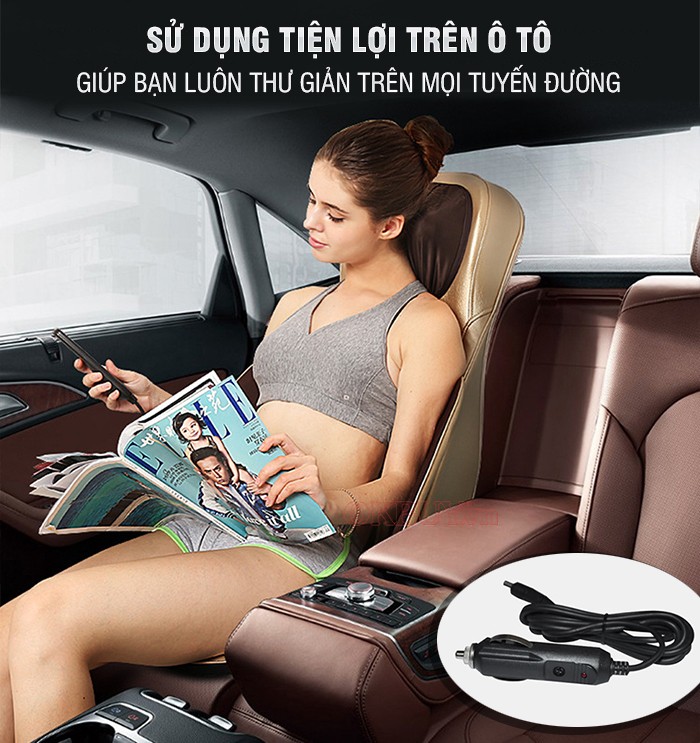 Đệm Massage đa năng Nikio NK-180 được hãng trang bị 2 loại cáp nguồn: Cáp nguồn ô tô và cáp nguồn điện gia đình. Chính vì thế mà bạn có thể sử dụng máy ngay tại nhà hay trên ô tô đều được. Bạn cũng có thể sử dụng đệm Massage này trên ghế làm việc văn phòng để cải thiện sức khỏe ngay trong quá trình làm việc.