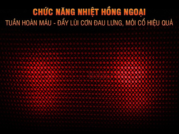 NK-180 tích hợp hệ thống sưởi ấm hồng ngoại tiên tiến nhất hiện nay. Hơi ấm hồng ngoại kết hợp với các kỹ thuật Massage từ con lăn sẽ giúp hỗ trợ tăng tuần hoàn máu, đẩy mạnh quá trình trao đổi chất của các tế bào, giảm các cơn đau nhức hiệu quả, giảm tình trạng căng cơ, chuột rút và xua tan mệt mỏi nhanh chóng.