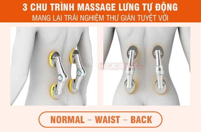 Nhấn lần thứ hai là thắt lưng (Waist), các bi xoay 360 độ mát xa tập trung vào thắc lưng, bi xoay đảo chiều khi hết chu trình