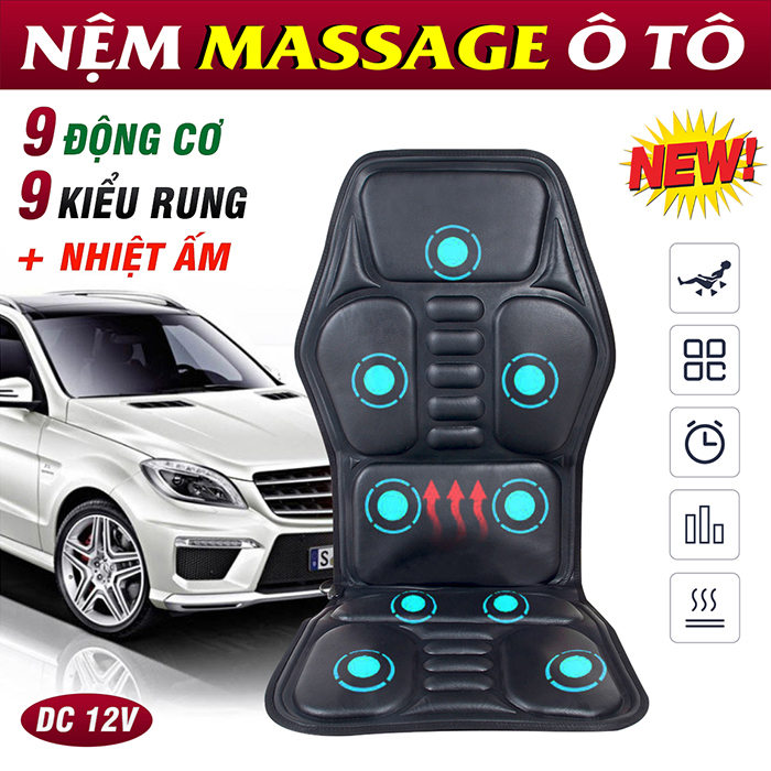 Nệm Massage ô tô nhiệt sưởi YIJIA YJ-308 được trang bị đến 9 mô tơ rung giúp xoa bóp ở nhiều vị trí trên cơ thể như cổ, vai, lưng, đùi và châ Giúp Massage thư giãn, hỗ trợ cải thiện căng thẳng mệt mỏi sau những ngày làm việc dài