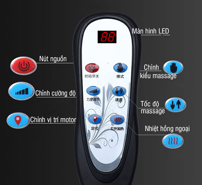 Bảng điều khiển kết nối trực tiếp với đệm, các nút chức năng đơn giản, dễ hiểu, dễ sử dụng tạo sự thuận lợi cho người dùng. Với bảng điều khiển thông minh, người sử dụng hoàn toàn có thể chủ động lựa chọn các chế độ masssage cho riêng mình.