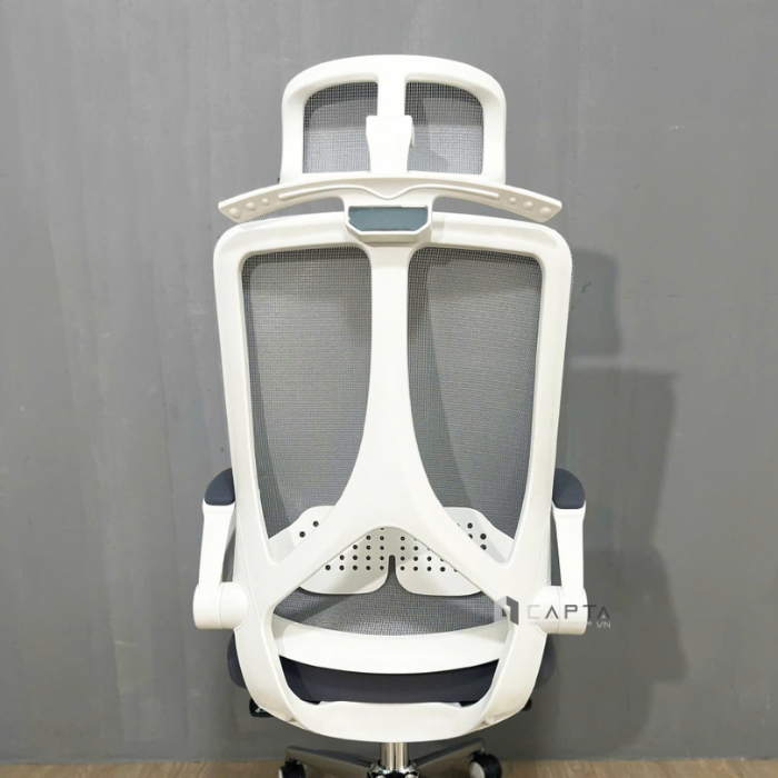 Lưng ghế được thiết kế bằng chất liệu lưới xám cao cấp, giúp tối ưu hóa sự thoải mái và khả năng thông gió. Chất liệu này giúp giảm nhiệt, giữ cho người ngồi luôn cảm thấy mát mẻ và dễ chịu ngay cả khi làm việc trong thời gian dài. Lưng cao của ghế hỗ trợ đắc lực cho phần lưng và cột sống, giúp giảm thiểu các vấn đề về đau lưng, mỏi cổ khi ngồi lâu.