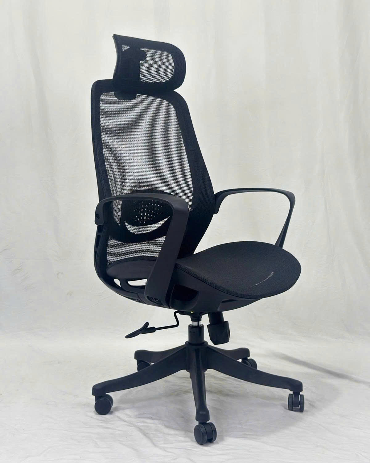 | Chất liệu | Khung nhựa đen, nệm lưới đen, chân nhựa đen, ghế xoay nâng hạ, chân có bánh xe, lưng ghế gật gù |