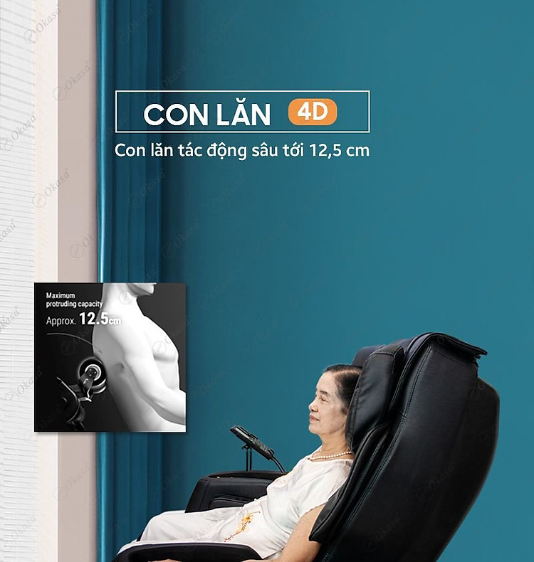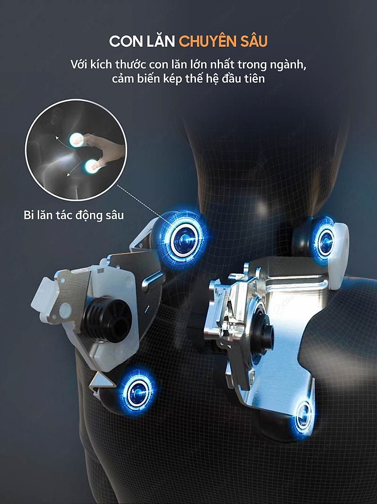 Con lăn 4D thế hệ mới, tác động sâu đến 12,5 cm vào từng cơ bắp, cung cấp lực Massage đa cấp độ cho từng khu vực được xoa bóp.
