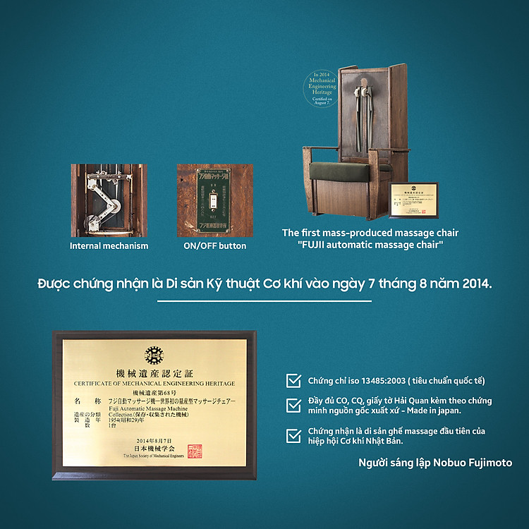 Kiwami là sản phẩm đến từ tập đoàn Fuji Medical - Hãng thiết bị y tế tốt nhất thế giới được thành lập năm 1954 tại Nhật Bản. Sau 67 năm phát triển, đây là tập đoàn dẫn đầu ngành công nghiệp ghế Massage, được đánh giá cao về chất lượng và phù hợp với thể chất tương đồng của người Việt.
