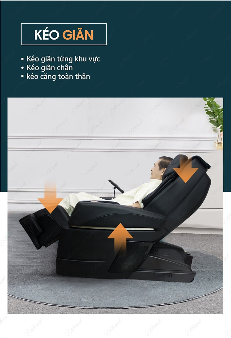 Kiwami là chiếc ghế Massage cao cấp sở hữu 3 chế độ kéo giãn thông minh, bạn có thể tuỳ chọn chương trình kéo giãn ưa thích tuỳ vào thể trạng mỗi ngày