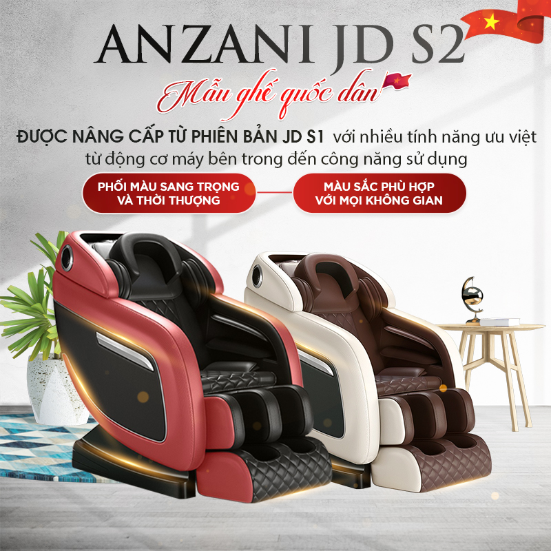 Giới thiệu Ghế Massage Toàn Thân Anzani JD S2, Máy Matxa Công Nghệ Nhật Trị Liệu 5 Vùng Đầu, Cổ, Vai Gáy, Lưng, Tay, Chân Với Chế Độ Nhiệt Hồng Ngoại - Be Nâu