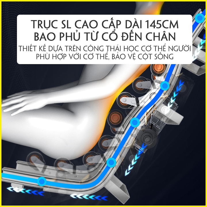 - Hệ thống bi lăn theo trục SL. Di động Massage từ mông đùi - lưng - cổ vai gáy.