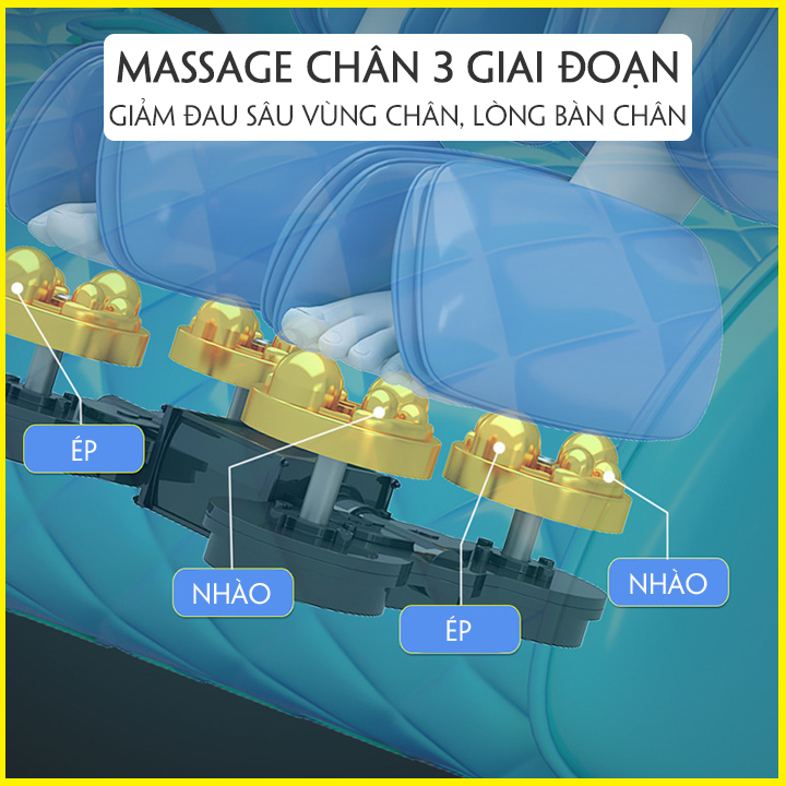 - Cụm bi lăn Massage lòng bàn chân cực kì chuyên sâu vào gan bàn chân, ngón chân, gót chân. Kết hợp với túi khí mu bàn chân, mắt cá chân linh hoạt.