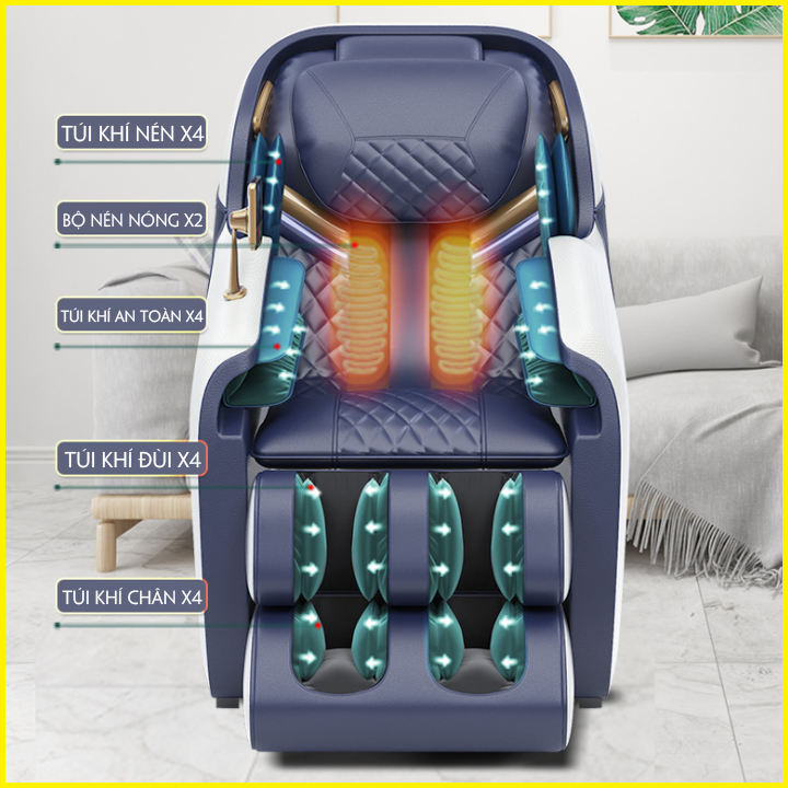 - Hệ thống túi khí cảm biến nhiệt hồng ngoại thông minh kết hợp với các bài tập Massage chuyên sâu giúp thúc đẩy tuần hoàn máu, loại bo? các cơn đau nhức.