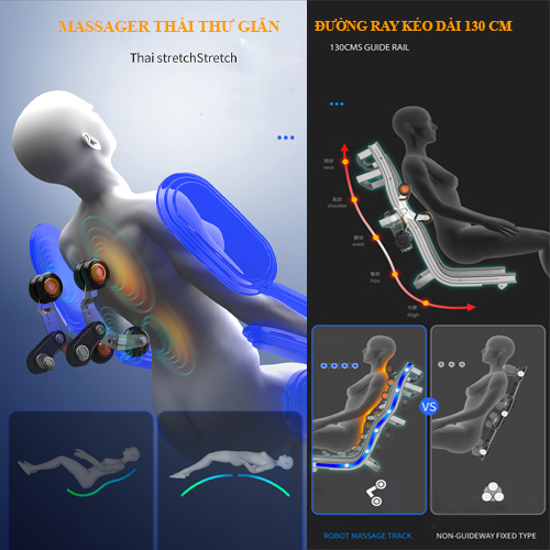 Thay ray nâng cấp với khu vực masage rộng hơn, độ chính sác cao trong các động tác và thiết kế phù hợp với cột sống con người.
