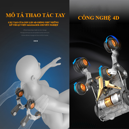 Công nghệ masage 4D đúc đặc, hệ thống masage linh hoạt đa điểm, bảo đảm không bỏ sót bất kì vùng nào.