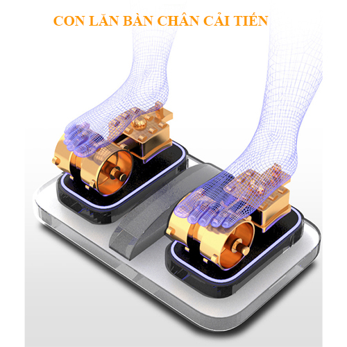 Cụm masage chuyên biệt thông minh, liên tục mô phỏng các động tác ấn, bóp, xoa, cạo toàn bàn chân giúp máu lưu thông giảm tê bì đau nhức.