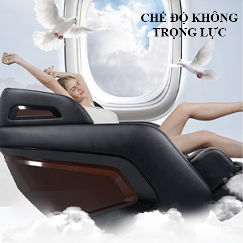 Massage không trọng lực: Ghế sẽ ngã ra sau 170 độ đưa cơ thể về tư thế chân ngang bằng với tim, cơ thể được thả lỏng, cảm giác như đang bay bổng trong không trung. Tư thế này làm giảm lực tác động lên vùng thắt và giúp lực Massage tác động được sâu nhất.
