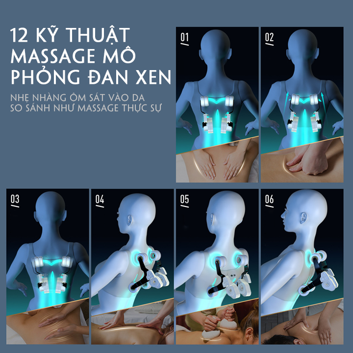 - Massage đa điểm trên cơ thể: Chân, đùi, hông, vai, cánh tay, lưng, đầu,...