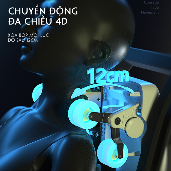 - Ghế Massage sử dụng con lăn di động 4D, chạy dọc từ vùng vai gáy đến vùng mông, tác động sâu đến các vùng đau nhức trên cơ thể, mang lại cảm giác Massage vô cùng chân thực
