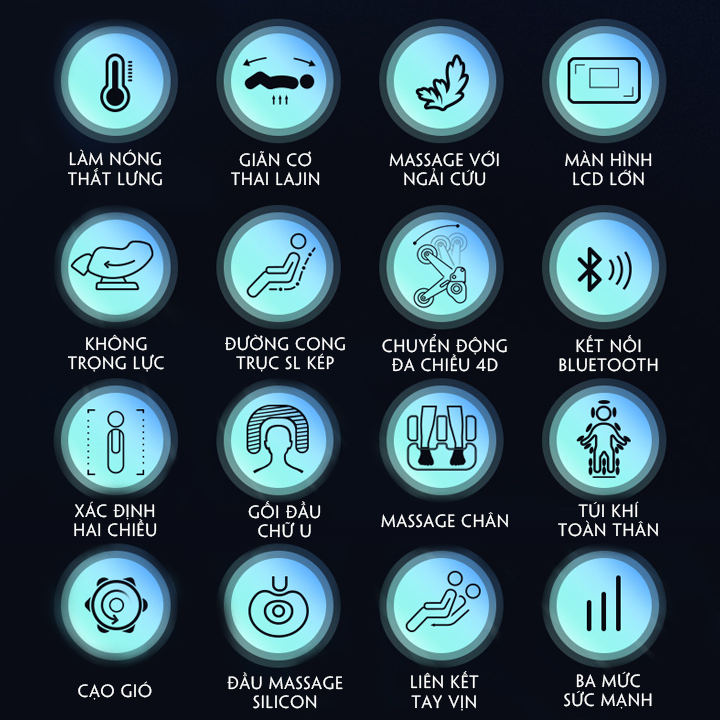 - Hệ thống 22 túi khí ôm sát toàn thân, lan tỏa cảm giác đến mọi điểm trên cơ thể