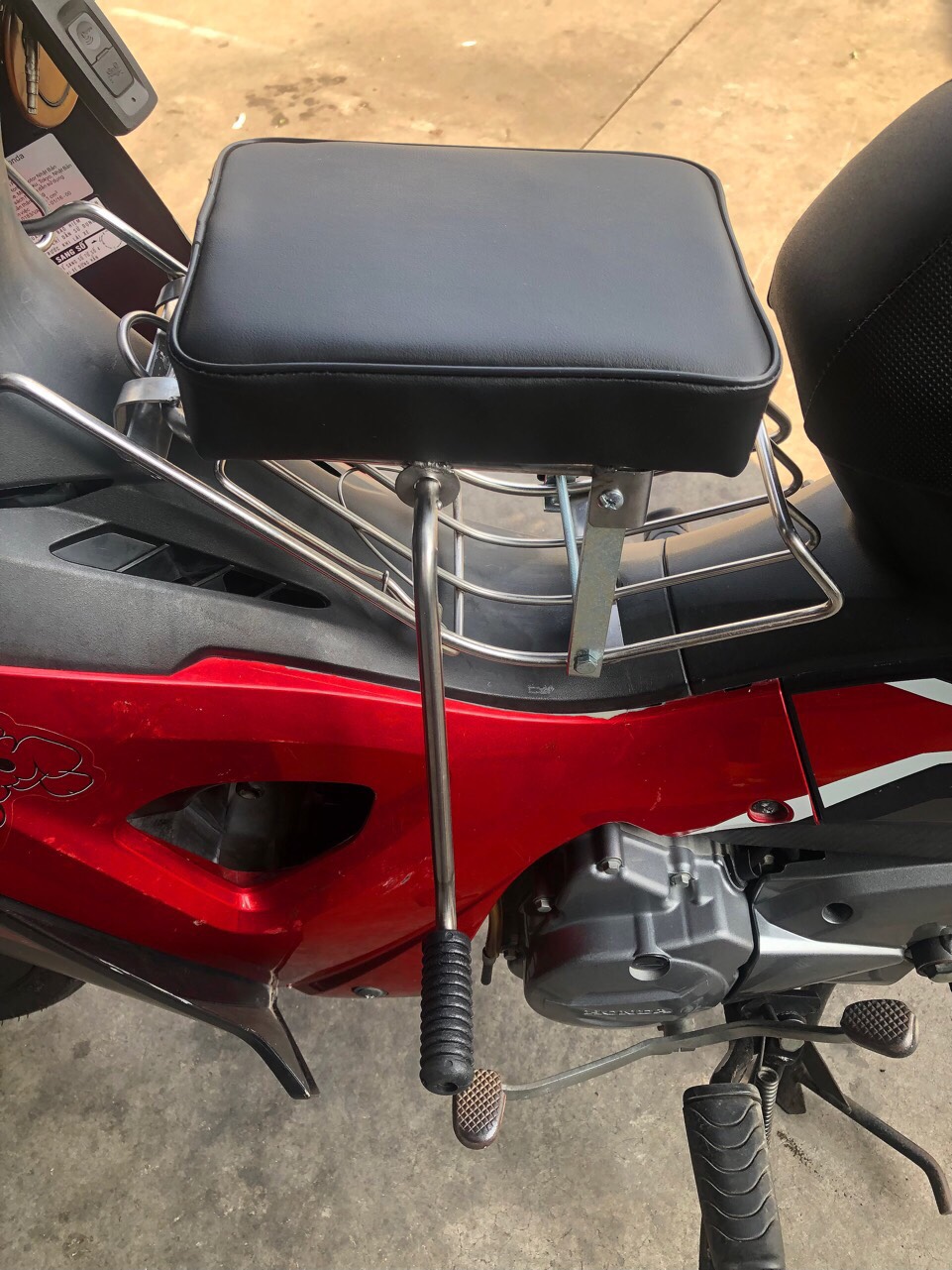 - Ghế ngồi xe máy số cho bé với thiết kế linh động, dễ tháo lắp. Giúp cho bạn tiện hơn mỗi khi muốn lấy ra khỏi xe. Bạn nên mua thêm dây đai an toàn và gối đi xe cho bé, nón bảo hiểm cho bé. Để chuyến đi đảm bảo an toàn tới mức có thể.