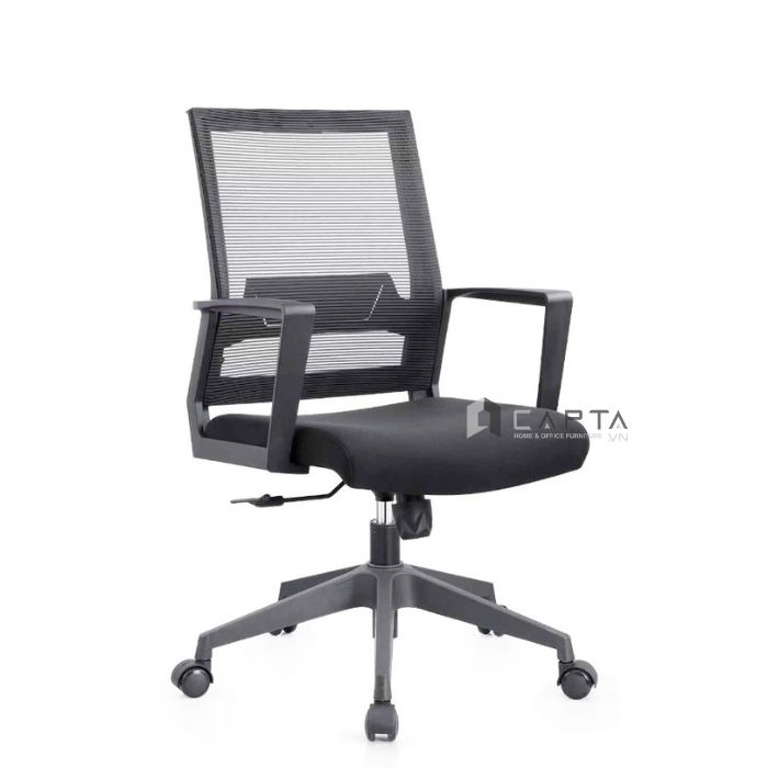 Ghế văn phòng lưng lưới trung CE4554-M với chất liệu lưng lưới thoáng mát, giúp người ngồi luôn cảm thấy dễ chịu trong suốt cả ngày dài làm việc. Khung nhựa màu đen cứng cáp và vô cùng chắc chắn. Thiết kế ghế văn phòng lưng trung phù hợp làm ghế làm việc dành cho nhân viên, ghế làm việc tại nhà.