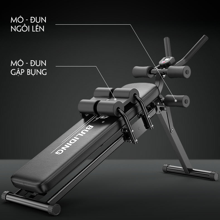 Ghế tập bụng đa năng model mới nhất, máy tập body, bảng điện tử, bệ đỡ bắp tay và chân, tải trọng 150Kg