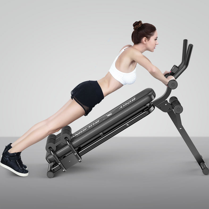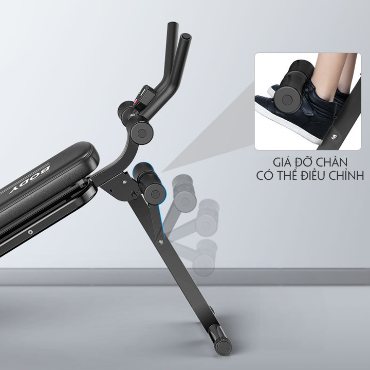 Giới thiệu Ghế tập bụng đa năng model mới nhất, máy tập body, bảng điện tử, bệ đỡ bắp tay và chân, thanh và da chống trượt, thanh trượt bụng, thanh đỡ tay cao cấp, tải trọng 150Kg