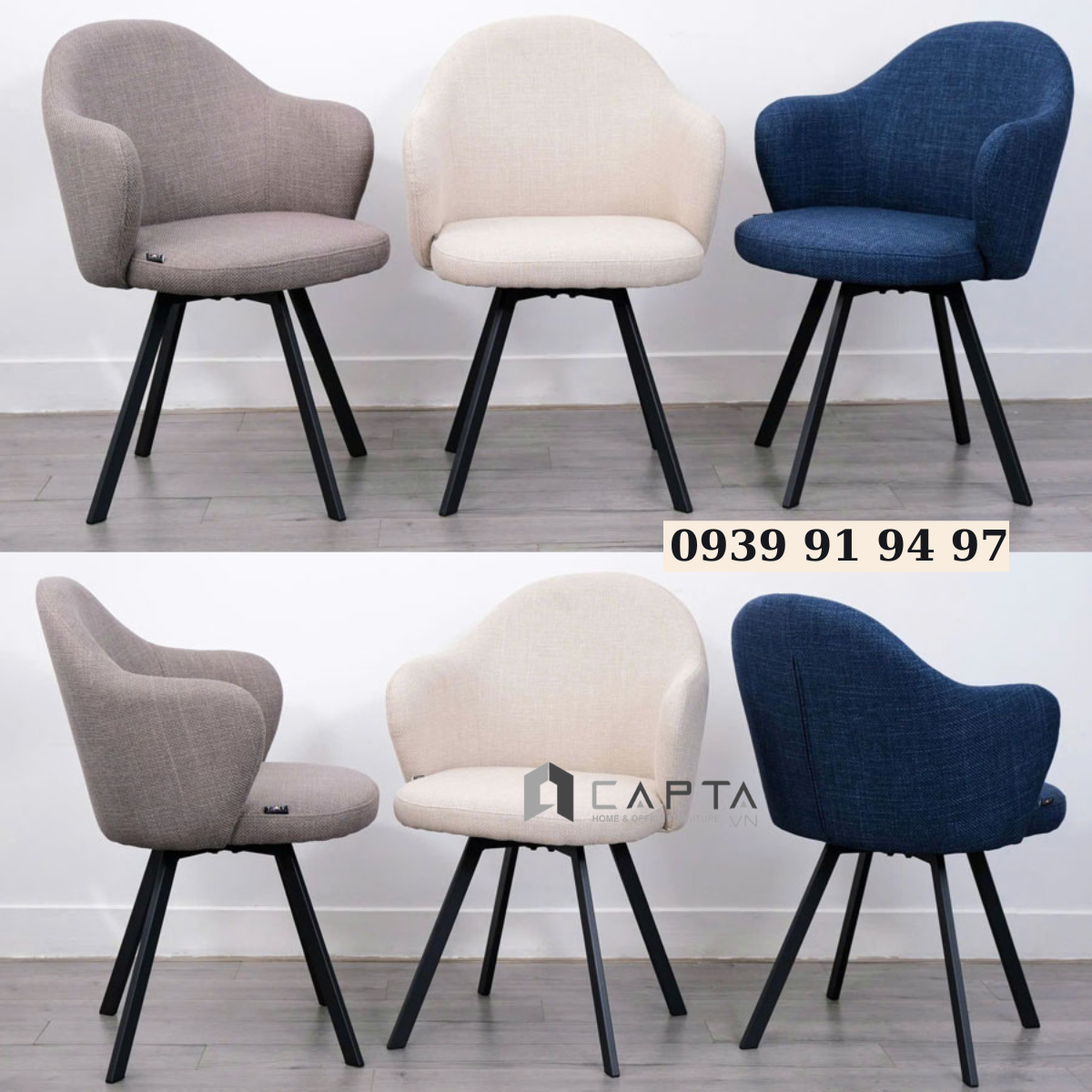 Ghế phòng ăn hiện đại nệm vải trắng, xám đậm, xanh tùy chọn. Ghế tiếp khách nệm vải CRAB 8A-F với thiết kế có tay giúp ngồi thoải mái.