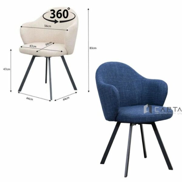 Ghế tiếp khách hiện đại thân xoay với chân sắt sơn tĩnh điện màu đen chống gỉ sét, thân xoay 360 độ tiện lợi.