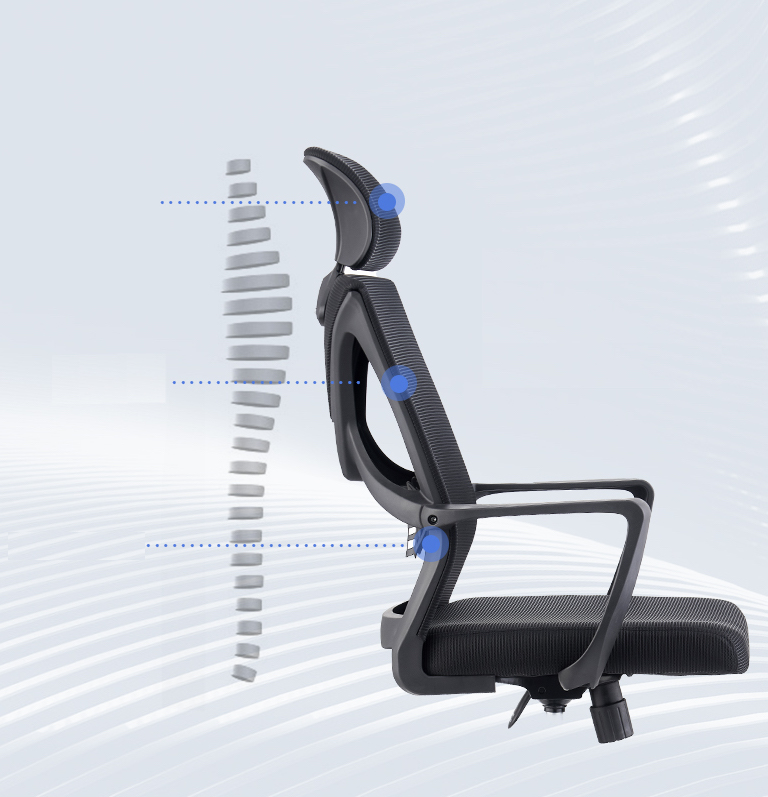 - Thiết kế “Công Thái Học” Hỗ trợ sống lưng, giúp giảm đau lưng khi ngồi lâu trên ghế.