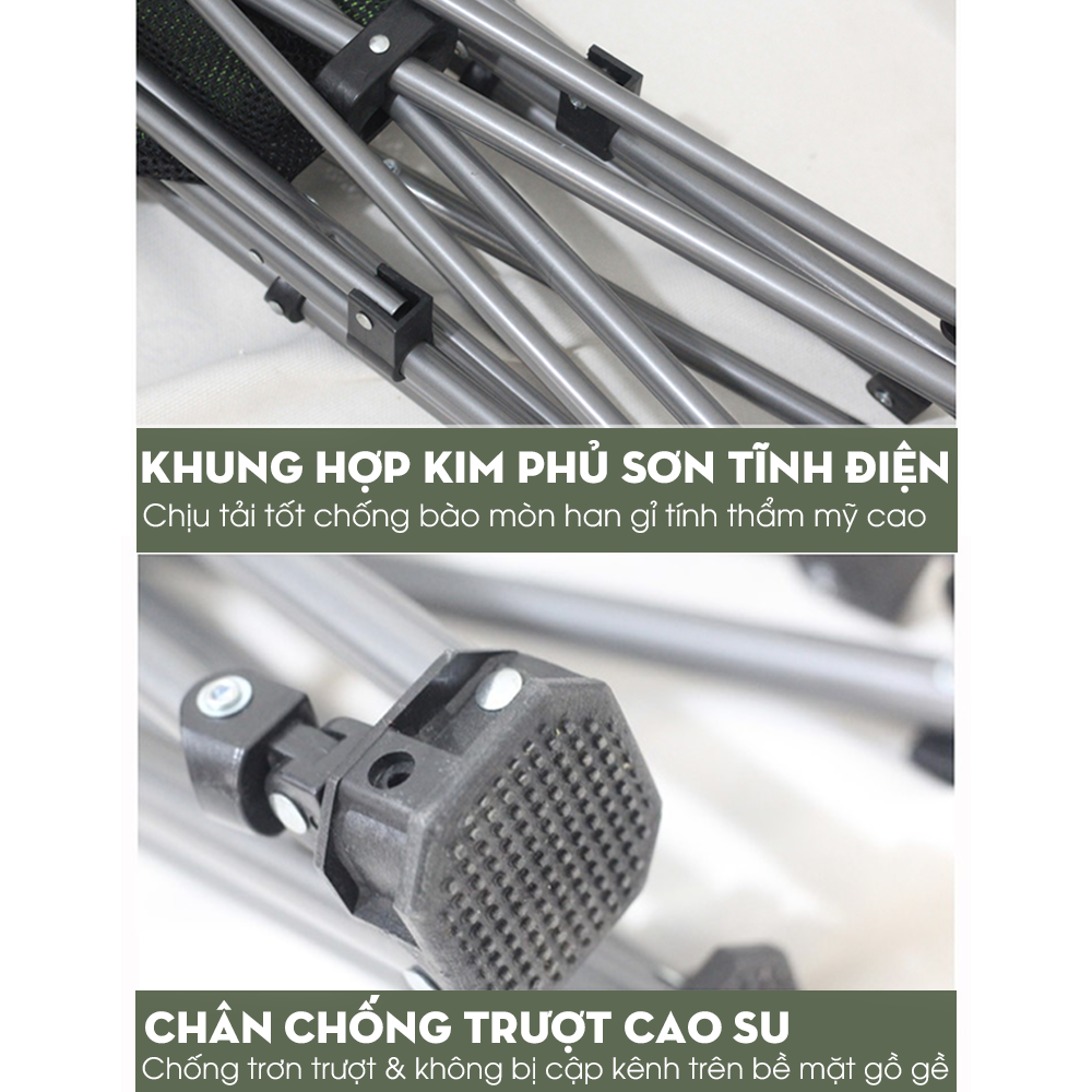 - Chất liệu khung: Khung thép sơn tĩnh điện chống gỉ sét, chống oxy, ống thép siêu chịu lực