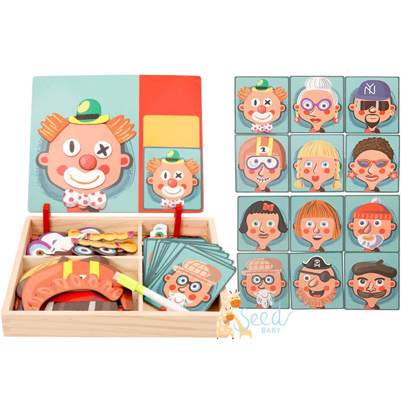 Mẹ & Bé > Đồ chơi > Đồ chơi giáo dục > Đồ chơi hình khối || Bộ ghép hình gỗ từ tính chủ đề khuôn mặt, ghép hình công chúa, ghép hình giao thông - SEED BABY