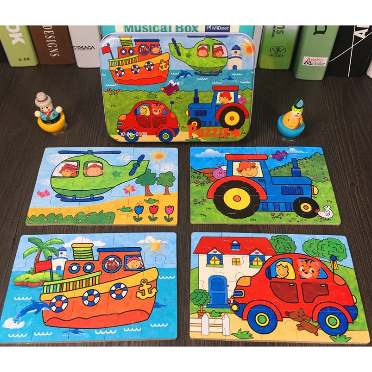 Puzzle tổng hợp 9,12,15,20 miếng Nghiên cứu được sản phẩm này e thấy rất tâm đắc ạ! 1 sản phẩm kết hợp đc cả 3 tiêu chí: giúp bé tăng dần tư duy, hình ảnh đẹp, bắt mắt và chất lượng gỗ rất mịn đẹp.