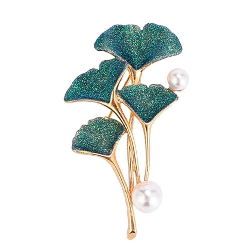 Giới thiệu Ghim cài áo hình lá bạch quả đính ngọc trai sang trọng màu xanh MẪU 10(5,5X3,2cm)
