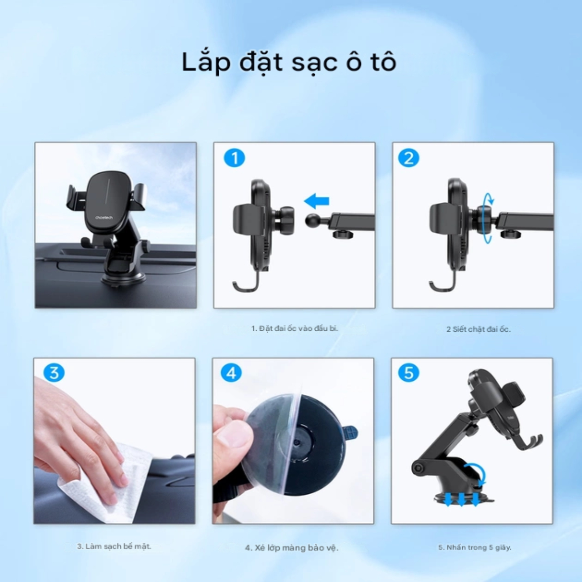 Giới thiệu Giá đỡ điện thoại sạc không dây trên ô tô 15W Choetech T203-F (Hàng chính hãng)