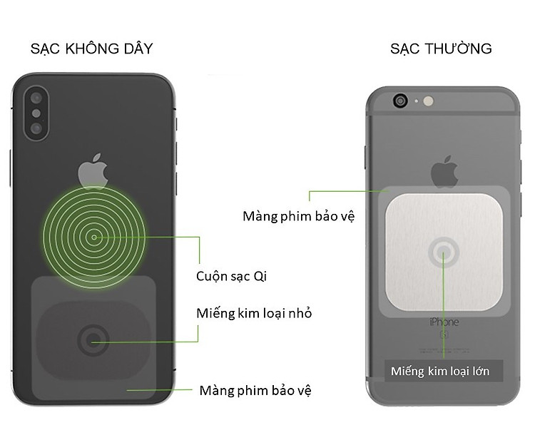 Một bộ miếng kim loại gồm miếng nhỏ và miếng lớn với một màng phim bảo vệ dính trực tiếp vào mặt sau của điện thoại hoặc ốp lưng, nhưng không ảnh hưởng tới sạc không dây khi đặt đúng vị trí tương ứng.
