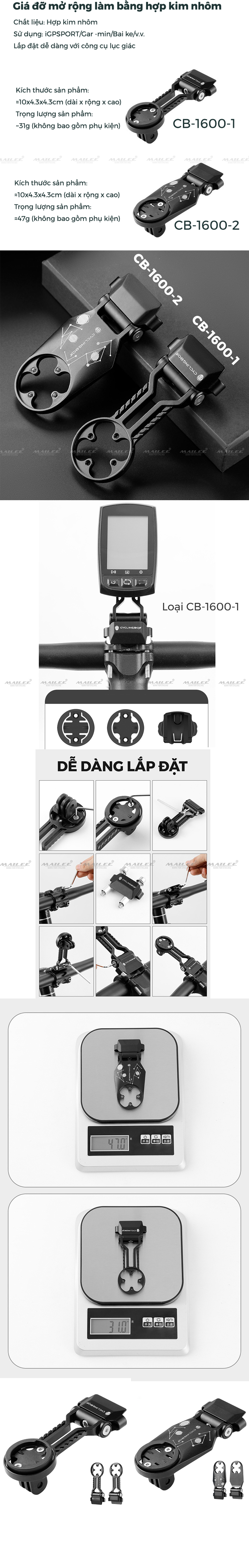Giá đỡ đồng hồ đa chức năng mở rộng điều chỉnh góc lên xuống 135 độ CyclingBox CB-1600 cho xe đạp địa hình bằng hợp kim nhôm kéo dài tay lái xe đạp - Mai Lee(sản phẩm sử dụng cho tay lái ghi đông có...