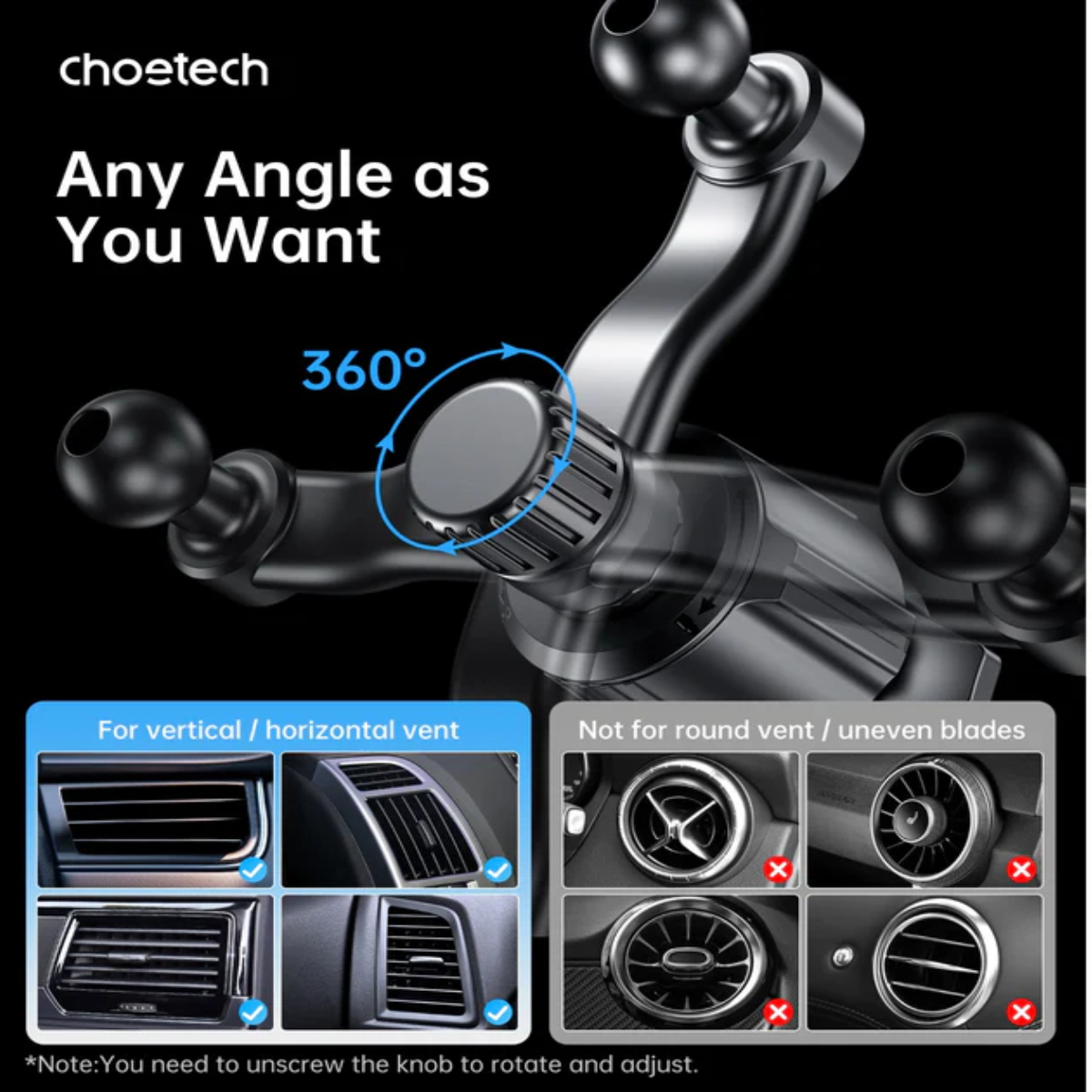 – Thiết kế kẹp chắc chắn giúp cố định giá đỡ lên khe gió điều hòa ô tô, đảm bảo độ ổn định và không gây cản trở không gian nội thất.