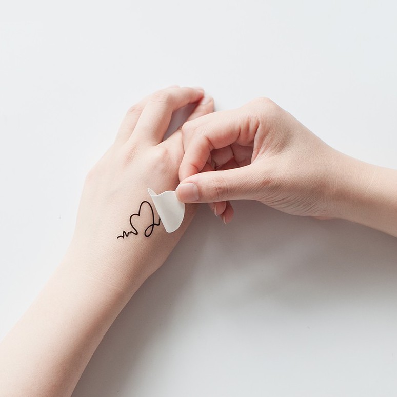 - Bóc lớp nilon phía trước hình xăm, sau đó dán mặt trước lên vùng da muốn xăm