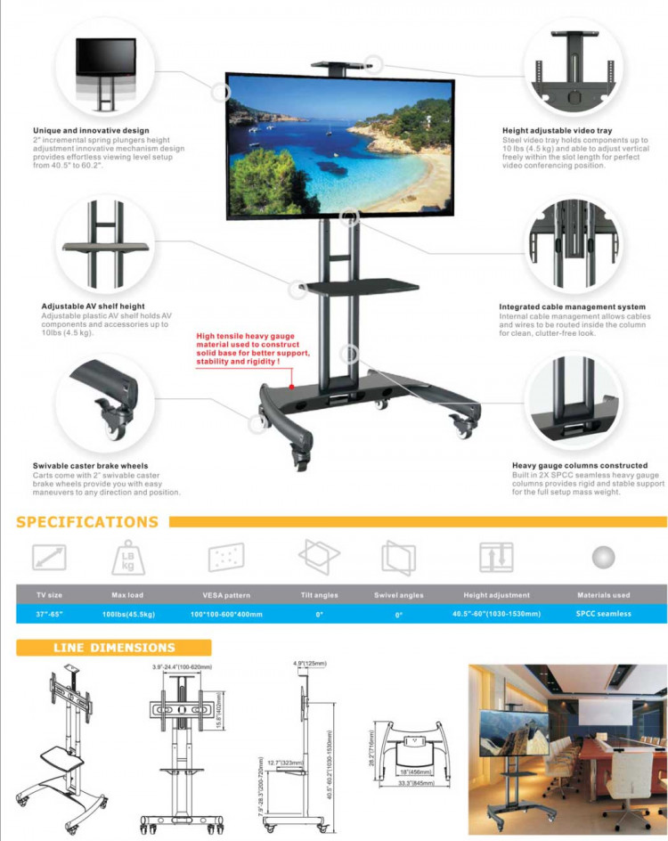 + Đóng gói: 98 x 93 x 12,5 cmNgoài ra, giá treo tivi di động AVA1500-60-1P được thiết kế dạng đứng với kích thước nhỏ gọn (dài x rộng x cao = 716 x 845 x 2130mm) nên cực gọn gàng. Bạn có thể đặt chiếc giá treo này sát tường hoặc di chuyển đến bất cứ nơi nào mình muốn để xem tivi mọi lúc, mọi nơi.