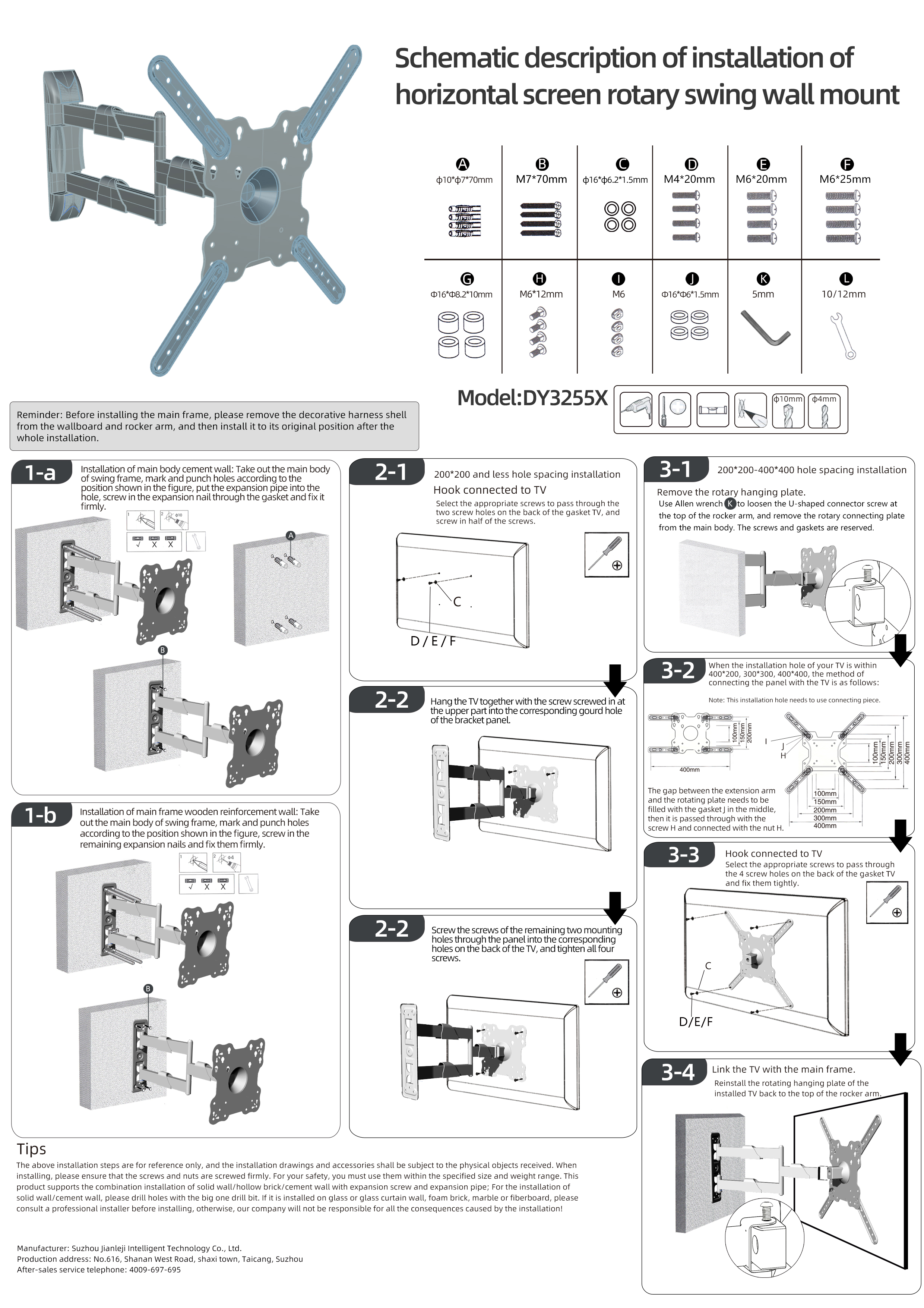 - Thích hợp cho các vị trí treo tivi rất khó