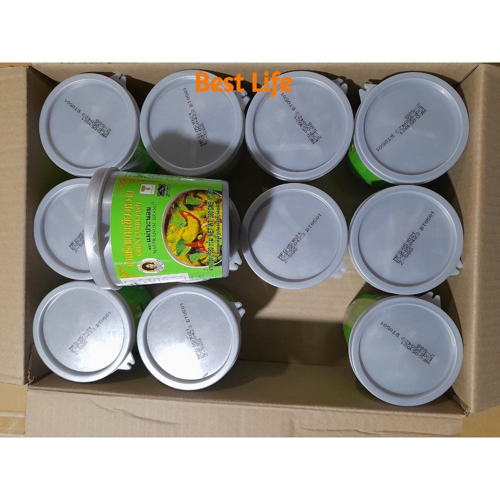 Thực phẩm và đồ uống > Nguyên liệu nấu ăn > Gia vị & Hương liệu > Gia vị & Thảo mộc || Gia vị cà ri xanh nhãn hiệu Maepranom 380g dùng để nấu các món cà ri thơm ngon hương vị Thái Lan