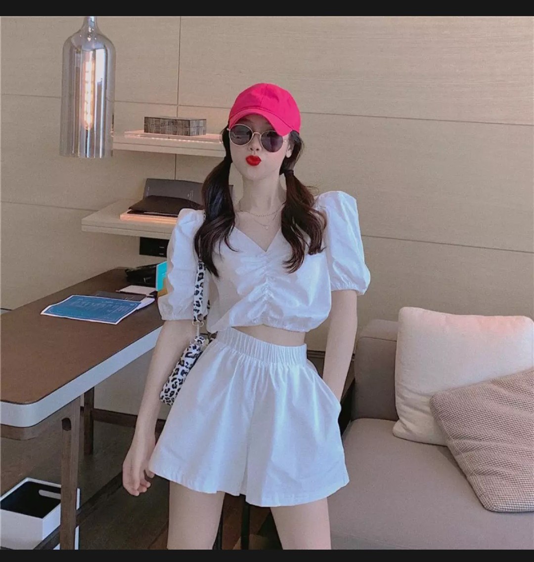Set bộ Áo croptop tay bồng kết hợp quần đùi basic tạo dáng trẻ trung năng động . Áo bo chun ngực, chun gấu, dáng ngắn, freesize dưới 60kg. Duy nhất 2 màu trắng, đen . Chất vải Đũi mềm mát, Áo tay phồng bo chun che khuyết điểm bắp tay và vai. Phần ngực bo chun giữa, tạo điểm nhấn cổ V, tôn và hack vòng 1. Áo dáng croptop ngắn, bo gấu eo, tôn vòng 2 thon gọn.