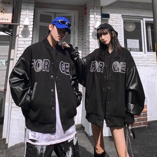 Áo khoác bomber tay da chữ FORGET from rộng unisex cho cả nam và nữ style ulzzang