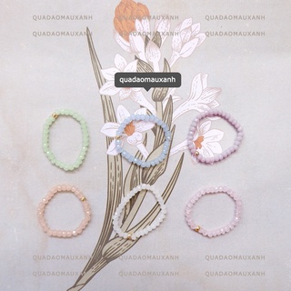 Set vòng và nhẫn hoa nhí Xuân Hạ Thu Đông, lắc tay hạt cườm co giãn màu pastel trong suốt lấp lánh #Quadaomauxanh