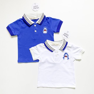 Áo Ngắn Tay Cổ Bẻ MINKY MOM COTTON 100% Thêu Hình Cá Mập Cho Bé TN-IN35
