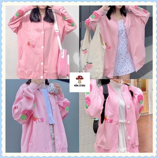 Áo Khoác Cardigan tay dài in hình trái Dâu Ulzzang màu hồng dâu