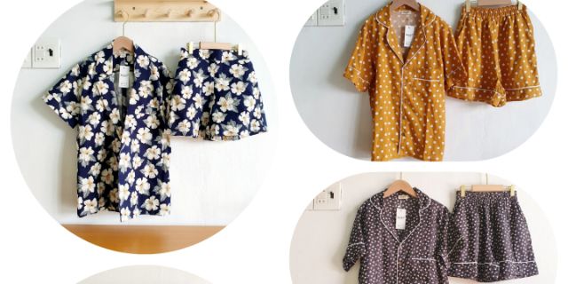Pyjama mặc nhà đùi xô muslin trơn với bảng màu xinh Hàn